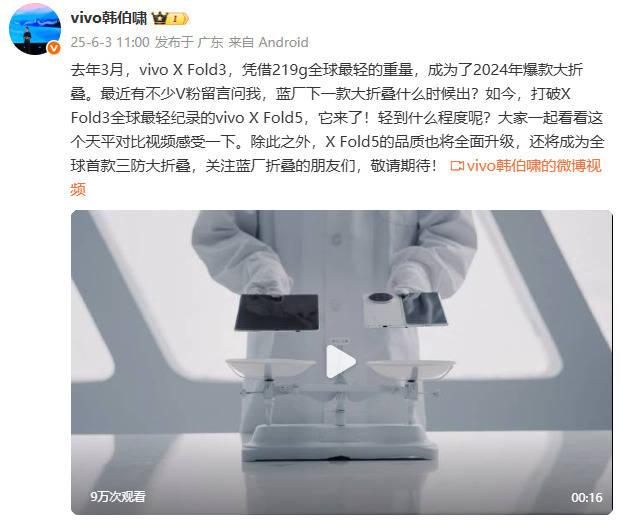 vivo X Fold5:史上最轻大折叠屏手机,预....推荐人:丁丁小编 发布时间:2025-06-03 17:18:01