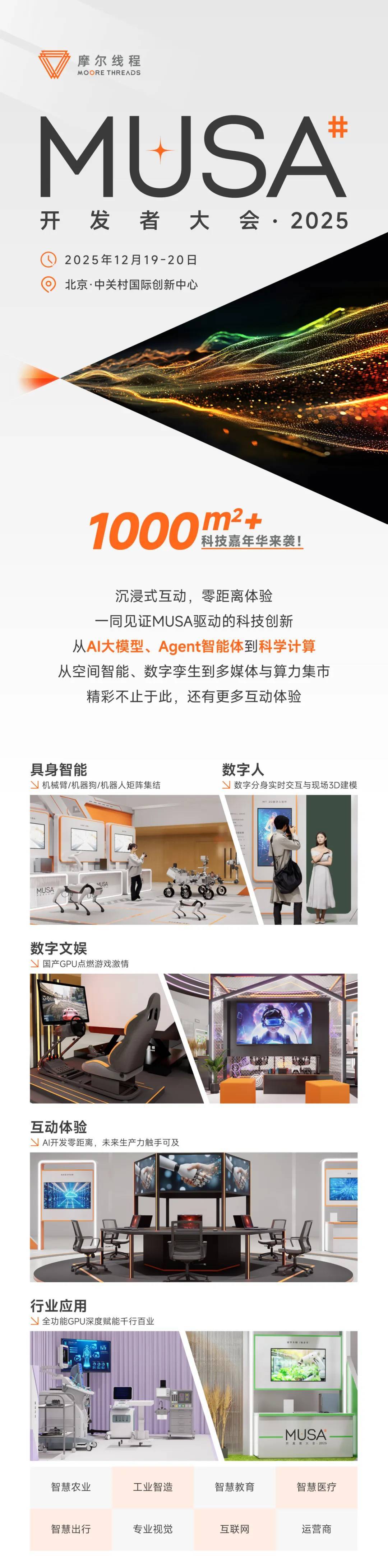 摩尔线程首届开发者大会定档,新一代GPU架构即将揭....推荐人:丁丁小编 发布时间:2025-12-09 15:18:00