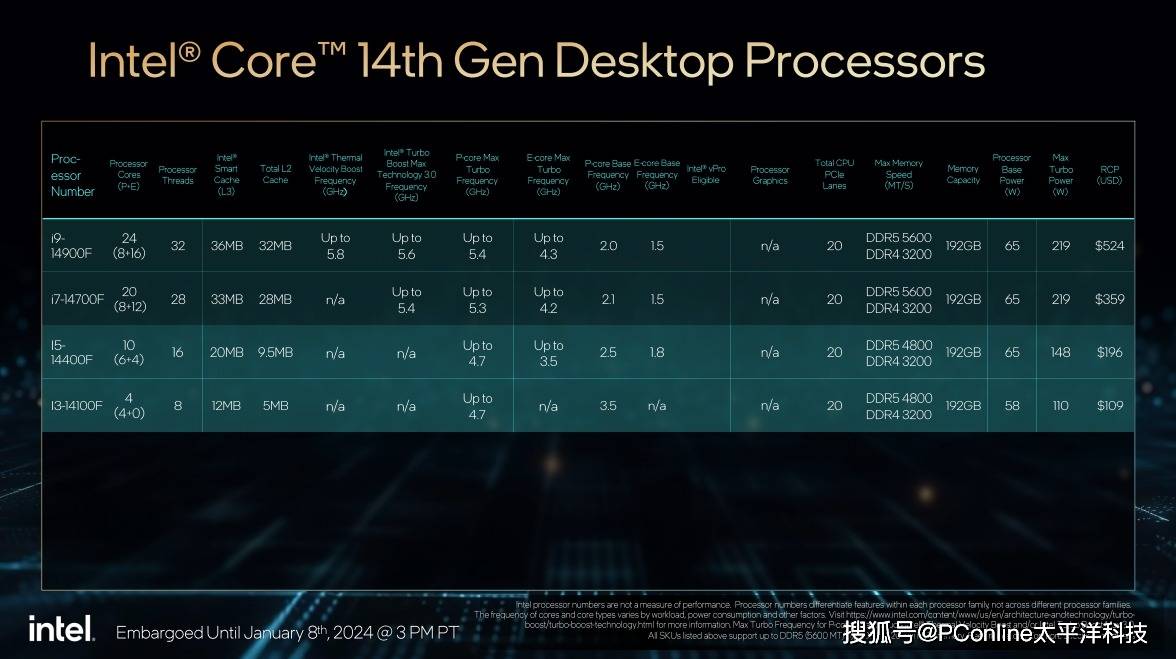 — Intel发布第14代酷睿非K处理器,实施14代补完计划 —