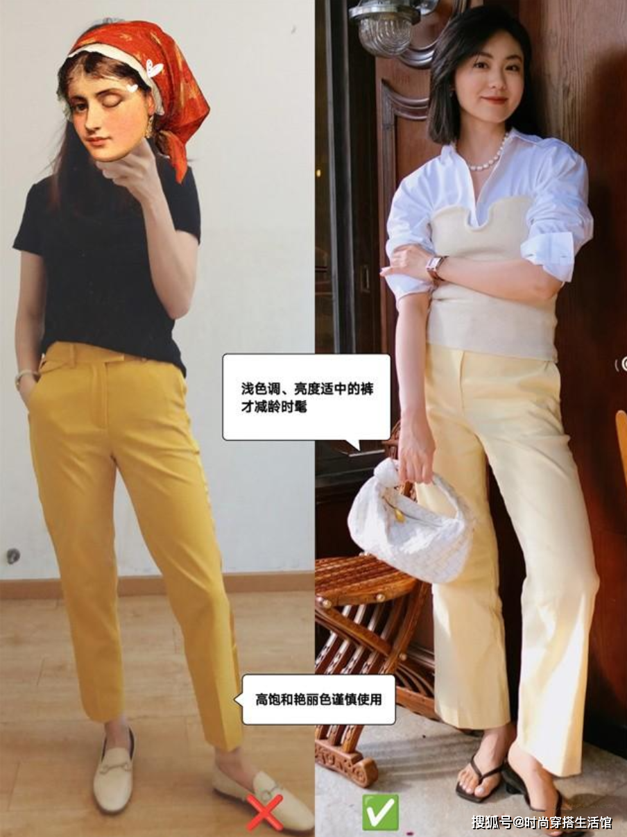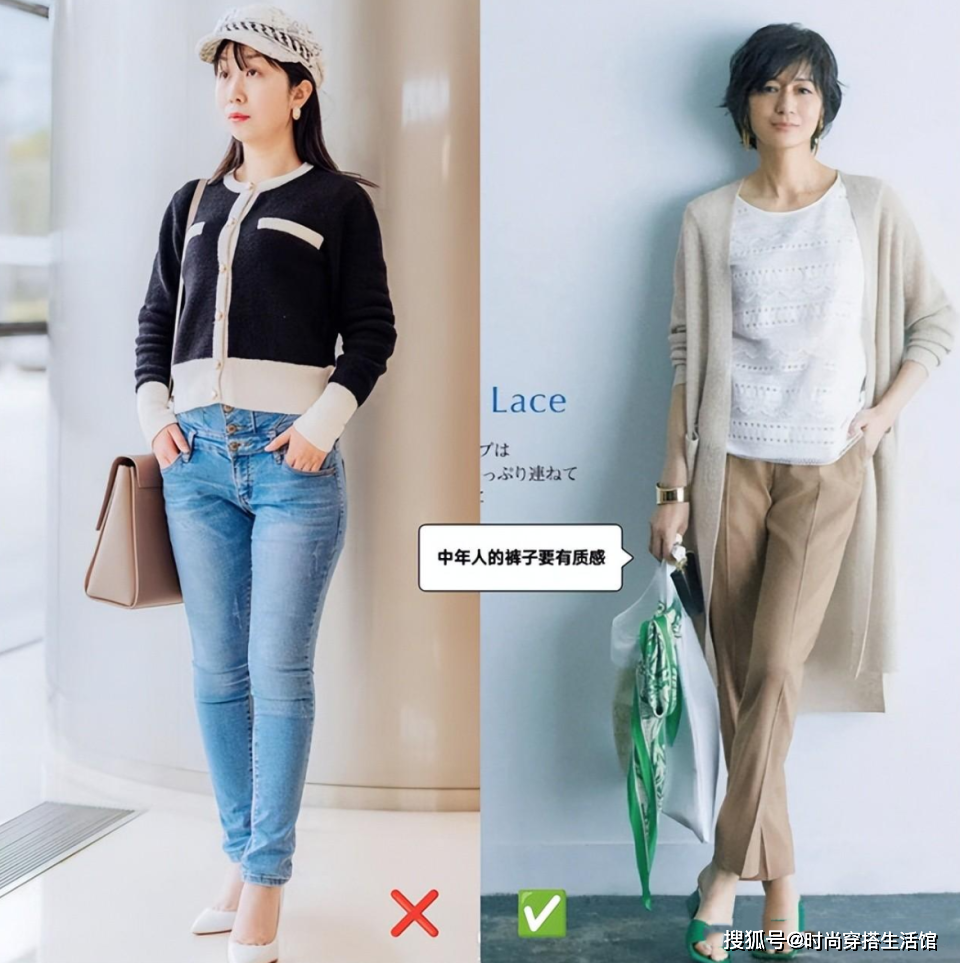 — 尽量不要穿西裤和牛仔裤,50岁左右的女性可以尝试更时髦、年轻的裤装款式 —