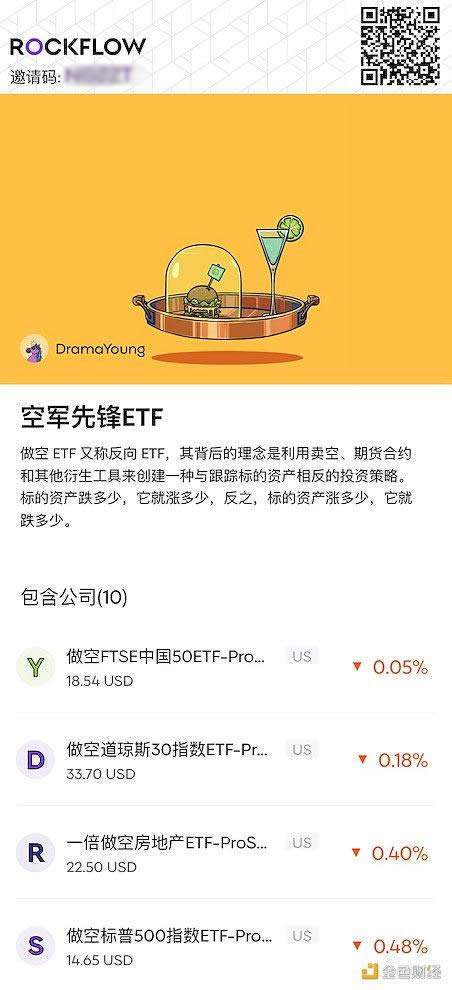 RockFlow 投研团队最近上线的这份“空军先锋ETF”股单,帮大家精选了针对美股各大指数以及金融、房地产、中国股指等标的的流动性较强的反向 ETF(出于整体阅读体验,下图仅部分展示):