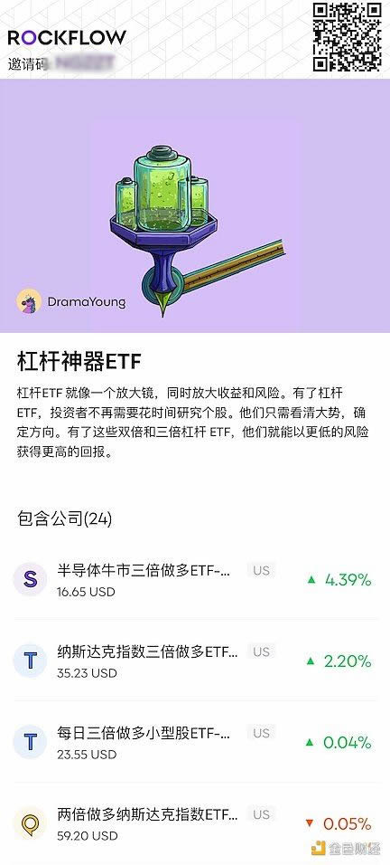 RockFlow 投研团队近期将多个美股重要指数和热门行业(半导体等)的高流动性杠杆 ETF 聚合起来,形成一份高质量的“杠杆神器ETF”股单,供感兴趣的投资者参考。借助这些杠杆 ETF,你也可以用较小资金撬动高额回报(出于整体阅读体验,下图仅部分展示):