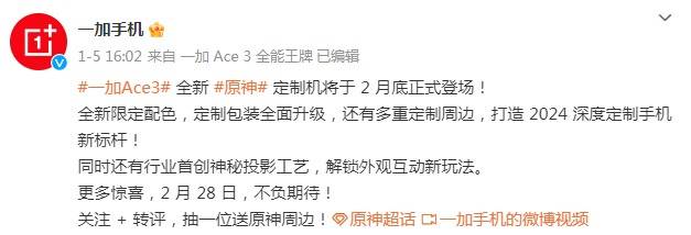— 火爆来袭!一加Ace3原神联动版即将推出,带来全新角色! —