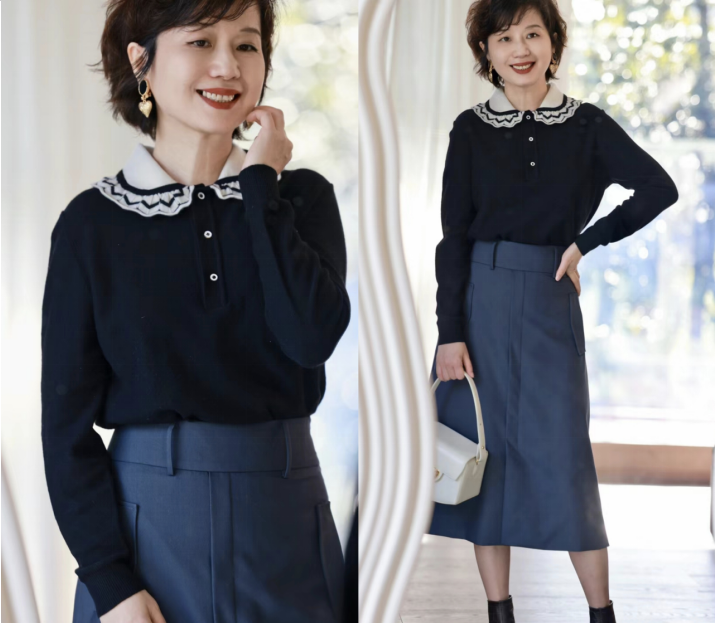— 中年女性穿裙子比裤子更具气质,雅致又显腰细 —