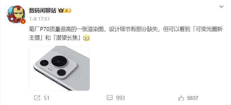 — 「全大底方案+新主摄传感器」影像配置拉满!华为P70系列有望3月发布 —