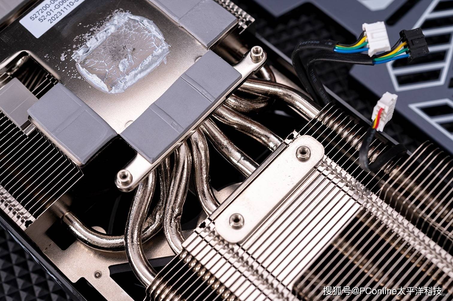 影驰在GeForce RTX 4070 Ti SUPER大将显卡上采用了名为“星烽散热系统”,有着异形构造外观设计,打破传统设计理念。最显眼的区别就是,其均热板之上还有一层金属压铸件加强框架,能够保证整张显卡的刚性。