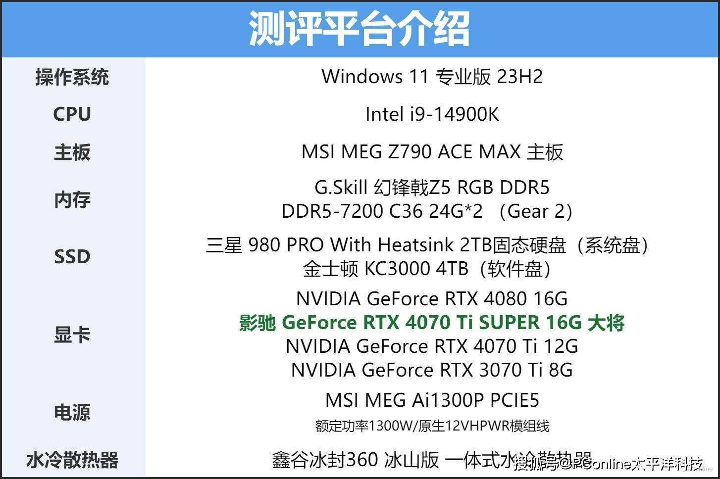 其他配置如上所示,都是时下最顶级的配置,这样才能让影驰RTX 4070 Ti SUPER大将发挥出全部的实力。