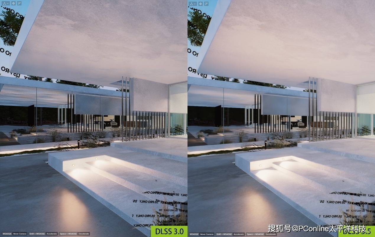 实测启用 DLSS 帧生成和光线重建后,视窗中的FPS提高了2倍,能够在大型场景中提供令人惊叹的分辨率和视觉质量。而没有DLSS 3的RTX 3070 Ti在帧数表现上就有些可怜了,因此如果你是这类渲染器的工作者,还是建议你直接升级成影驰RTX 4070 Ti SUPER大将,更强的性能开启实时渲染新纪元。