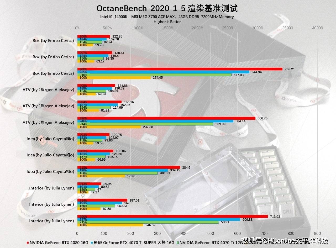 压力更大的Arnold渲染器也不在话下,创作者普遍用这款渲染器进行电影和高端视觉效果制作。实测影驰RTX 4070 Ti SUPER大将的表现还是一如既往的出色,在渲染时长或效率上明显超越RTX 4070 Ti,如果跟前代显卡对比,那性能差距将来到140%以上。