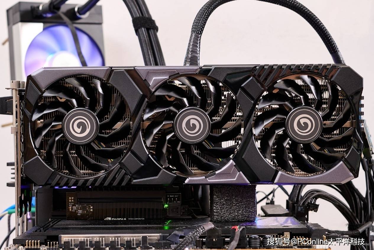 影驰RTX 4070 Ti SUPER大将还给星烽散热系统安排了3个92mm的风扇作为主动散热,厚度达20mm,散热效能显著。