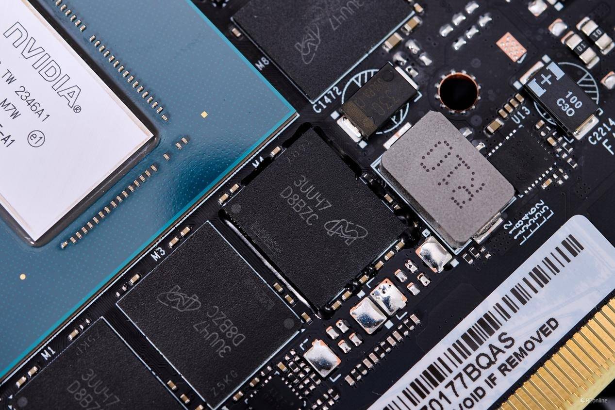 显存方面,影驰RTX 4070 Ti SUPER星曜OC采用了16GB的显存设计,可以看到所有的显存颗粒焊盘都焊满了美光的GDDR6X显存颗粒,型号为3UU47 D8BZC,单颗容量2GB。