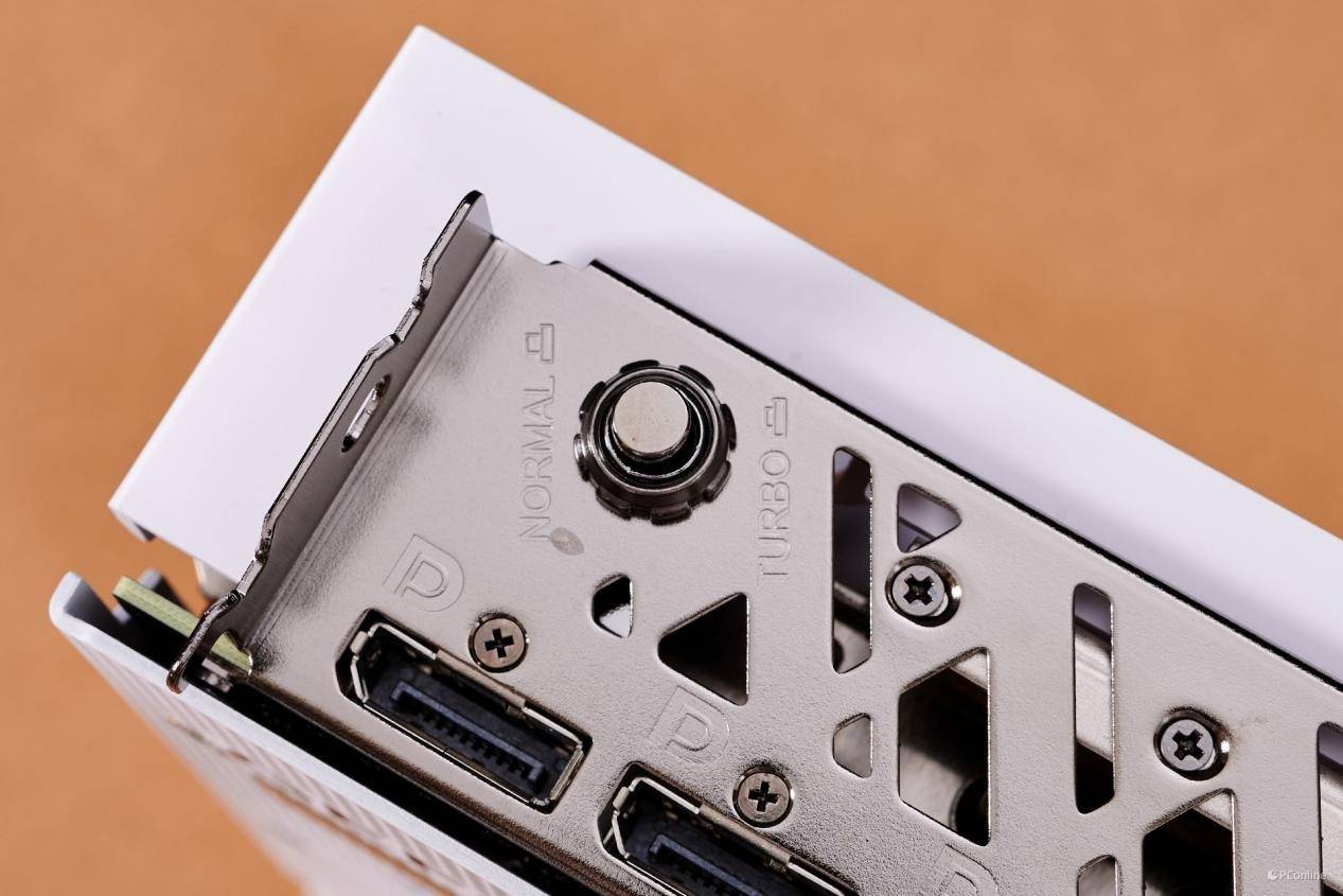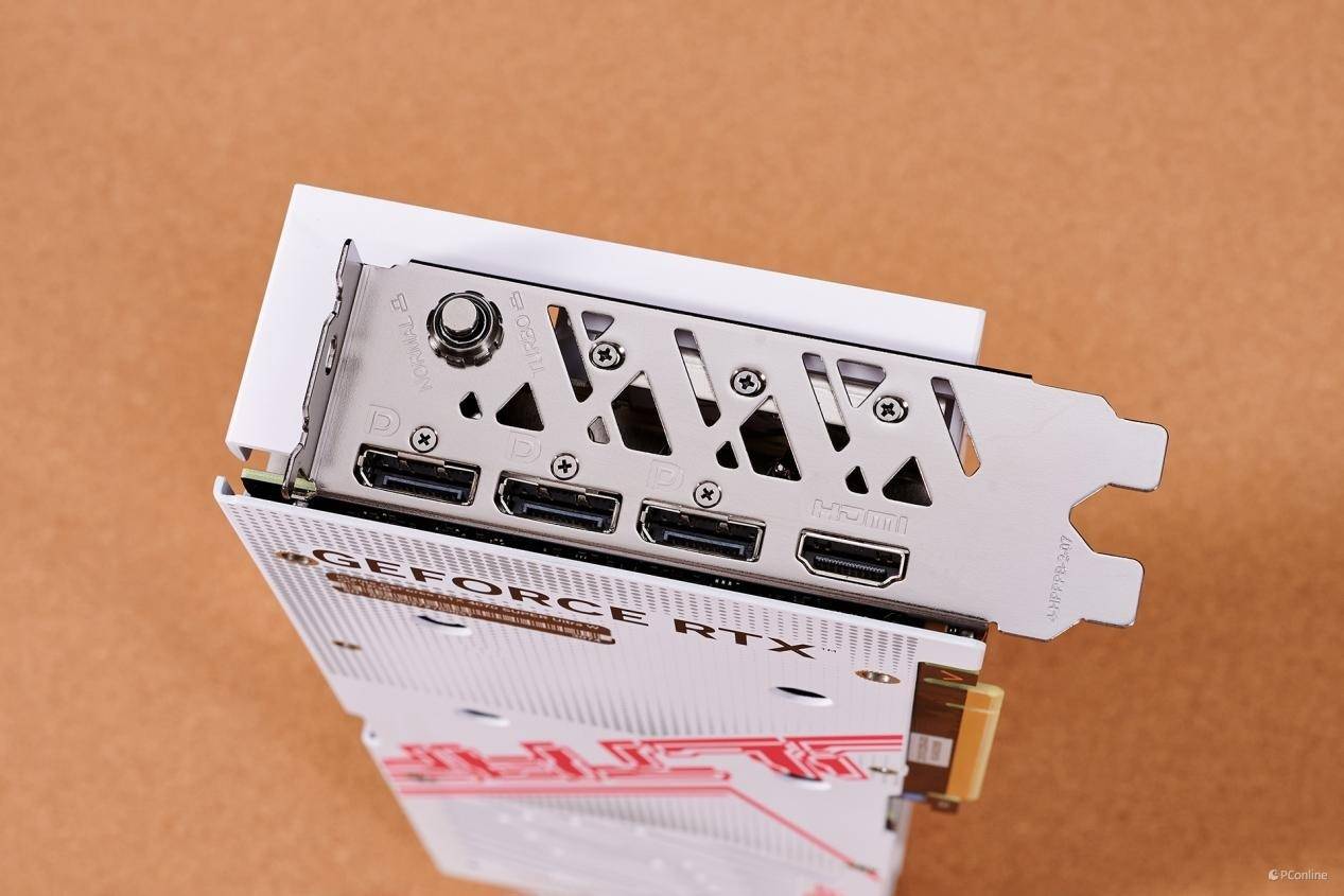 输出接口方面还是三个DP 1.4a与一个HDMI 2.1a的配置。这里笔者提醒一下大家,RTX 40系列显卡优先使用靠顶部的DP 1.4a接口,以及HDMI2.1a接口,尤其是显示器设备较旧的用户,以便提升更好的设备兼容性。