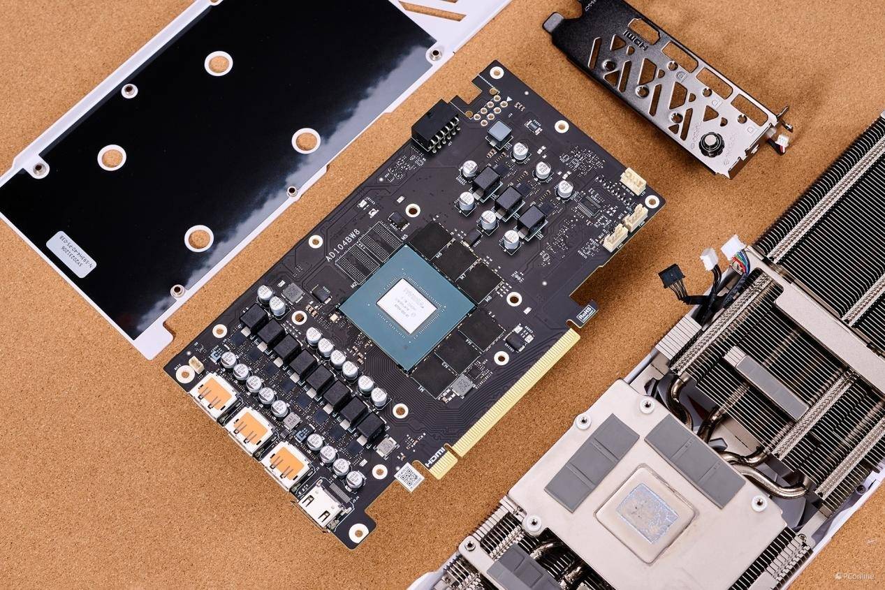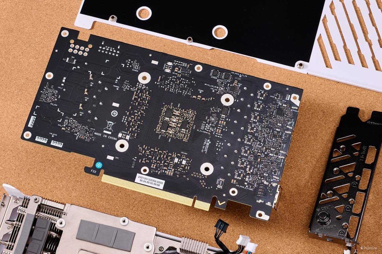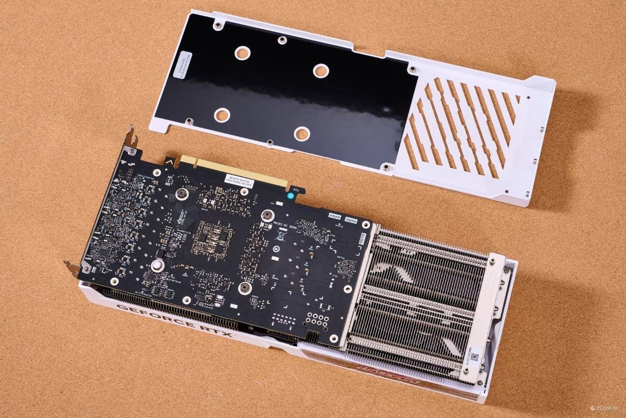 目前主流显卡均是从背部开始拆解,显卡均采用三明治的设计,先是一块金属背板,其后是锁定到散热器上的PCB,以及大型散热器。金属背板另外一个作用是提供整块显卡更好的支撑力,更好的刚性,以避免PCB受力不均变形,甚至是断裂的情况发生。