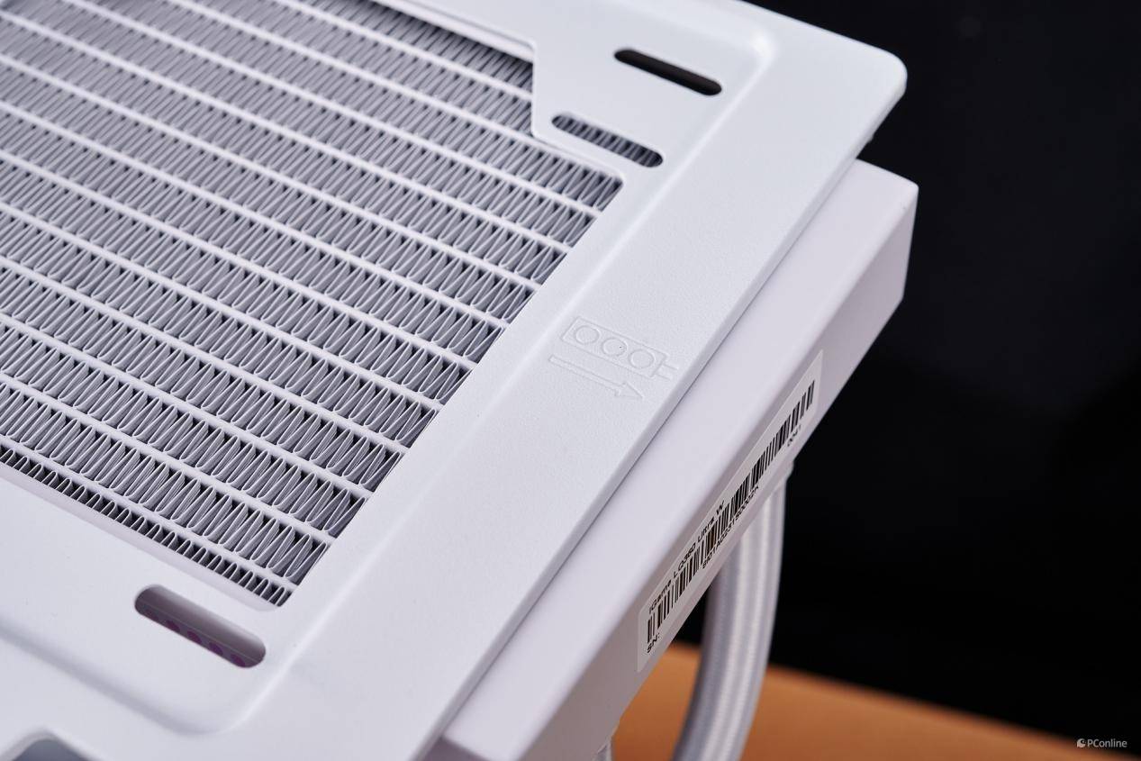 比较可惜的是iGame LQ360 Ultra W冷头上的“深渊镜”并不能改变方向,于是为了更好地展示效果,我们再次拆掉换了“三点”水冷管出水的方向。