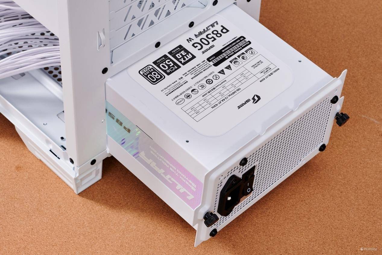 iGame P850G Ultra W产品采用全模组的设计,内部是全日系固态/电解电容LLC Pro+DC-DC 纯血架构+13.5cm FDB轴承风扇的设计,支持目前最新的ATX3.0与原生PCIe 5.0模组线。