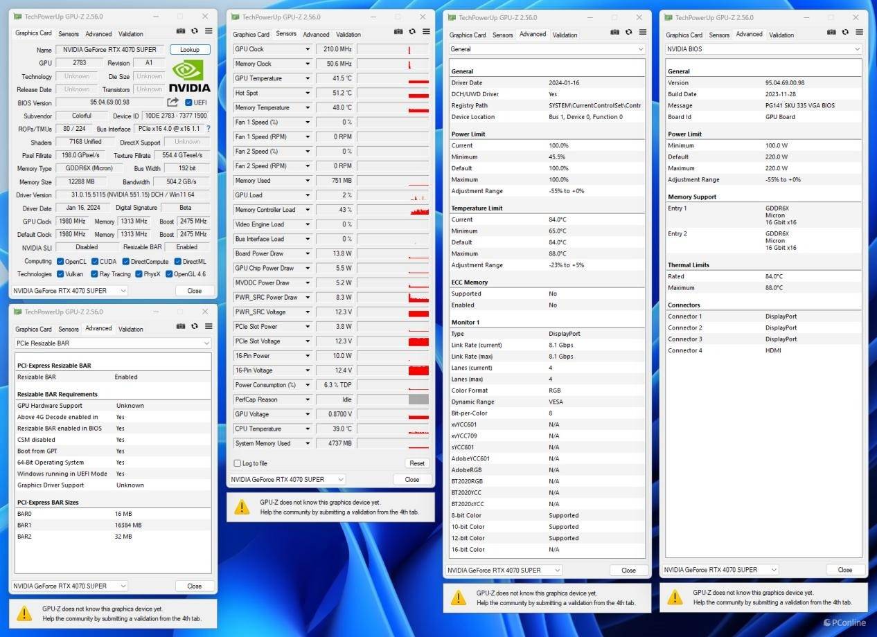 iGame RTX 4070 SUPER Ultra W OC 一键超频模式GPU-Z信息截图