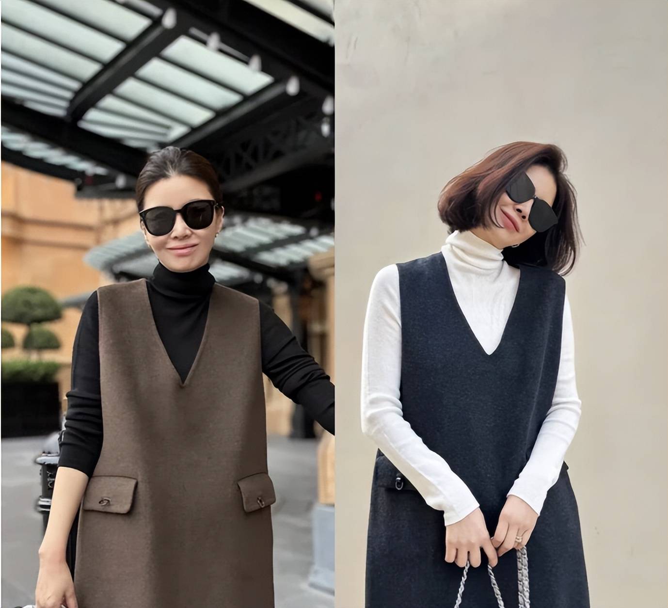 - 郭晶晶与闺蜜在豪宅里聚会!穿V领衬衫+针织衫,高级、显贵又松弛