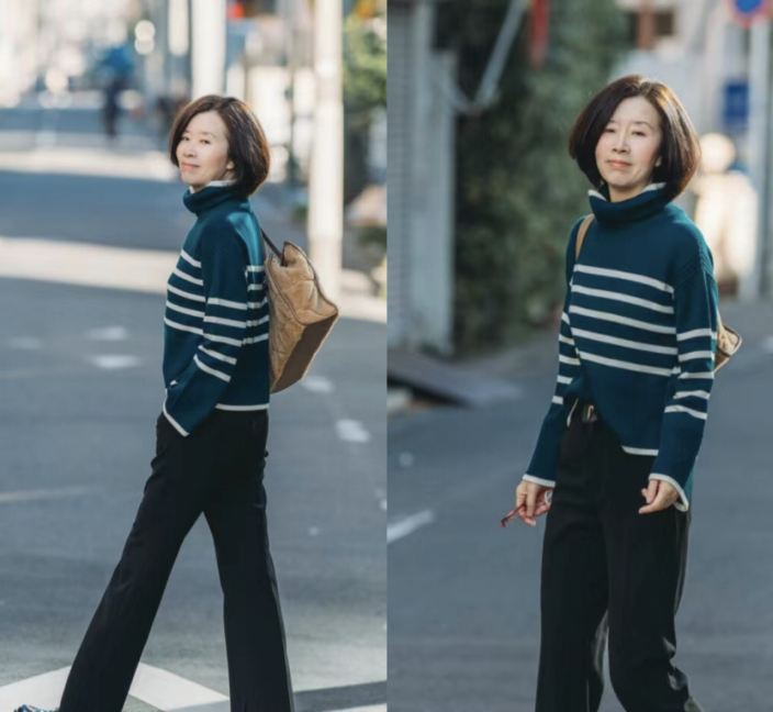 — 50岁普通女性的最佳着装风格:选择短外套和微宽裤子,展现高挑大方 —
