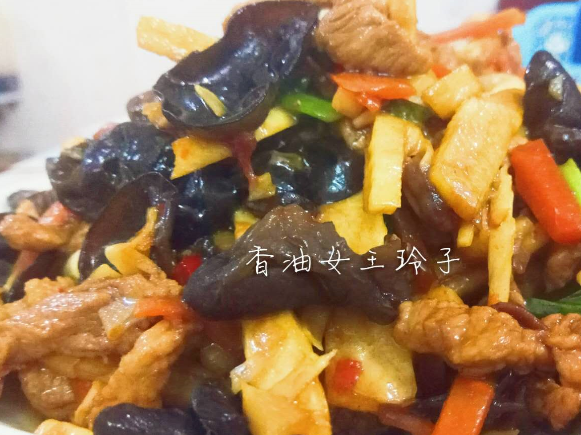 — 美味下饭神器:冬笋、肉丝、木耳和胡萝卜的清脆炒菜 —