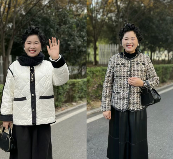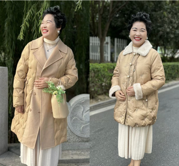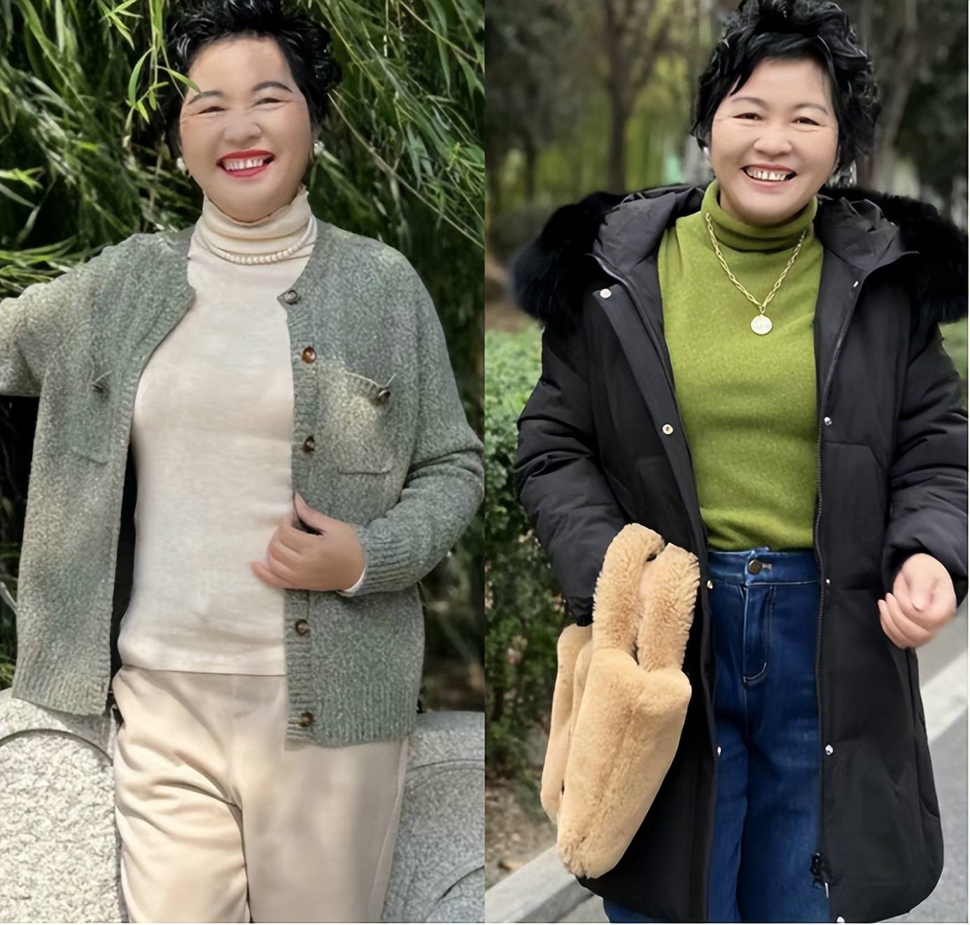 — 冬天如何穿着,让50岁微胖妈妈显高又有气质?修身内搭搭配短款外套 —