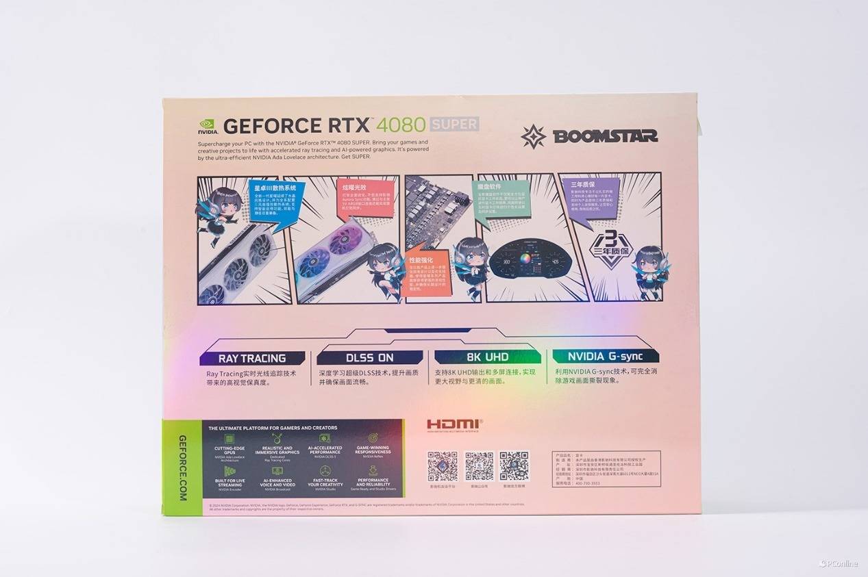 熟悉的彩虹镀膜,熟悉的星曜娘。影驰RTX 4080 SUPER星曜OC还是过往的包装风格,主打一手时尚年轻气息,二次元形象非常符合时下玩家的审美,彩虹镀膜工艺也让整个包装有了别样的视觉效果。