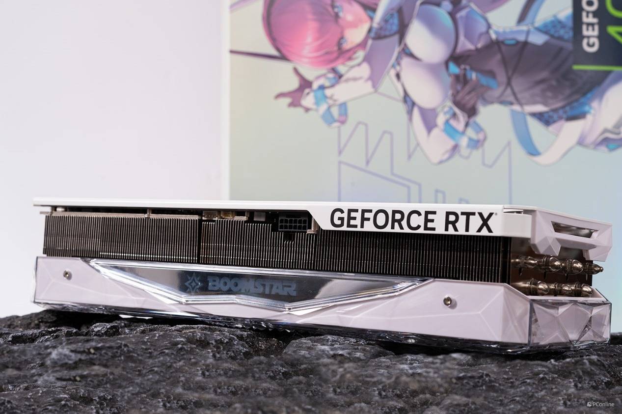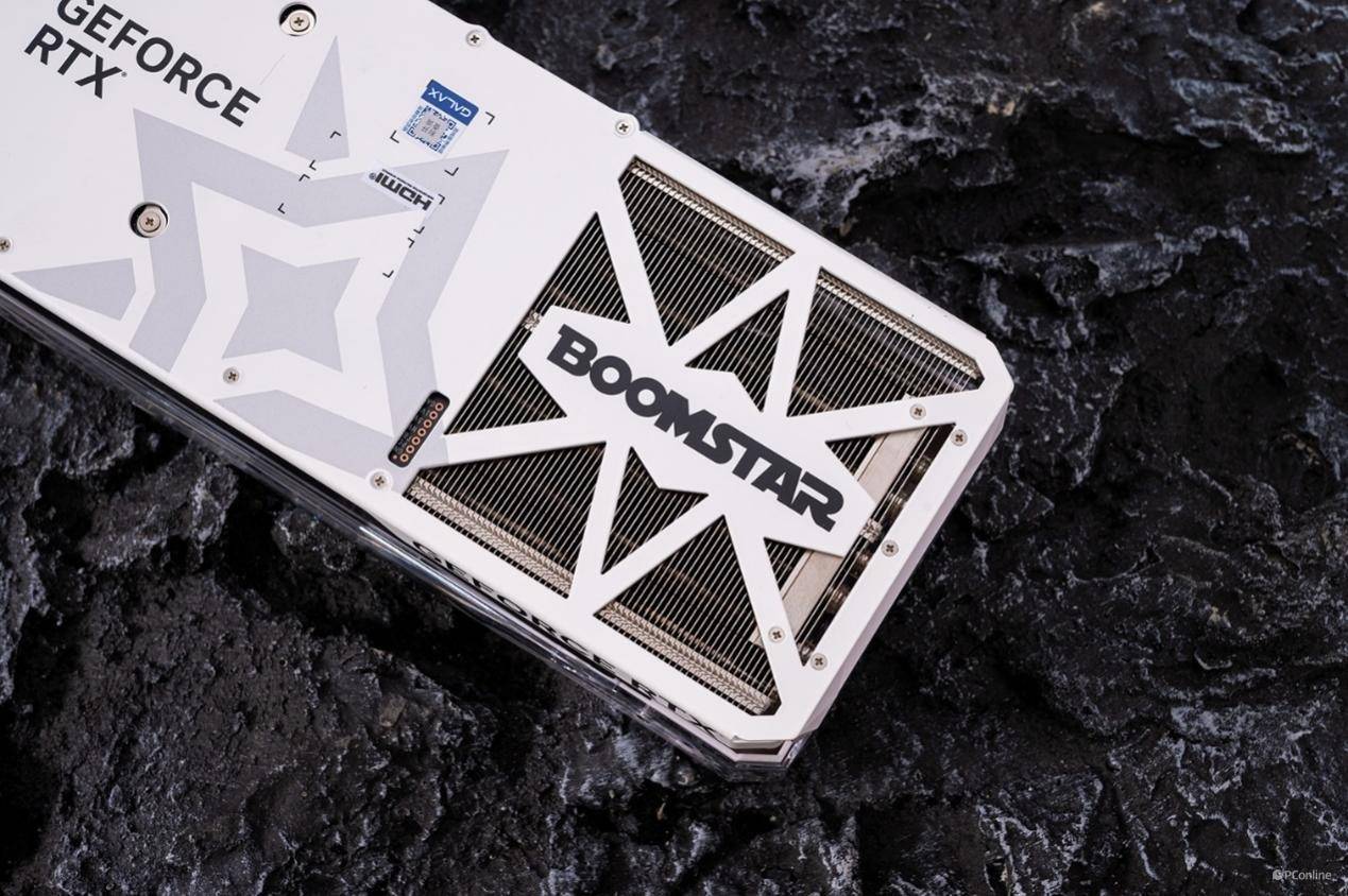 显卡的顶部非常平整,首先映入眼帘的是正中间的信仰Logo“BOOMSTAR”,它还是一个ARGB灯,上机后会有不一样的效果。