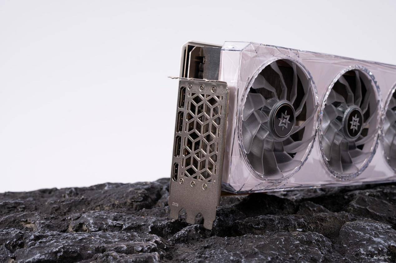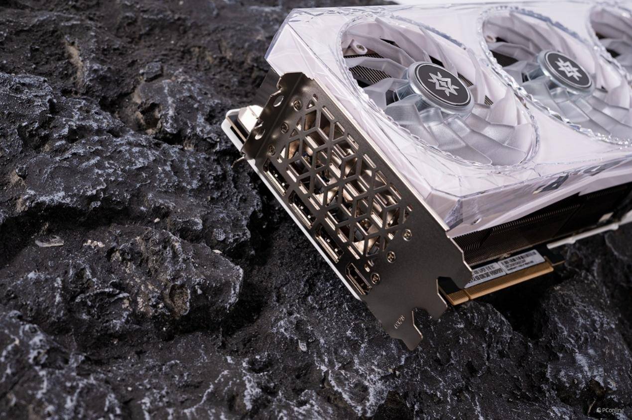 背板是高端显卡常见的一体压铸金属背板设计,白色喷涂搭配丝印工艺提升了整体的质感的同时也诠释了什么叫做“纯白美学”。