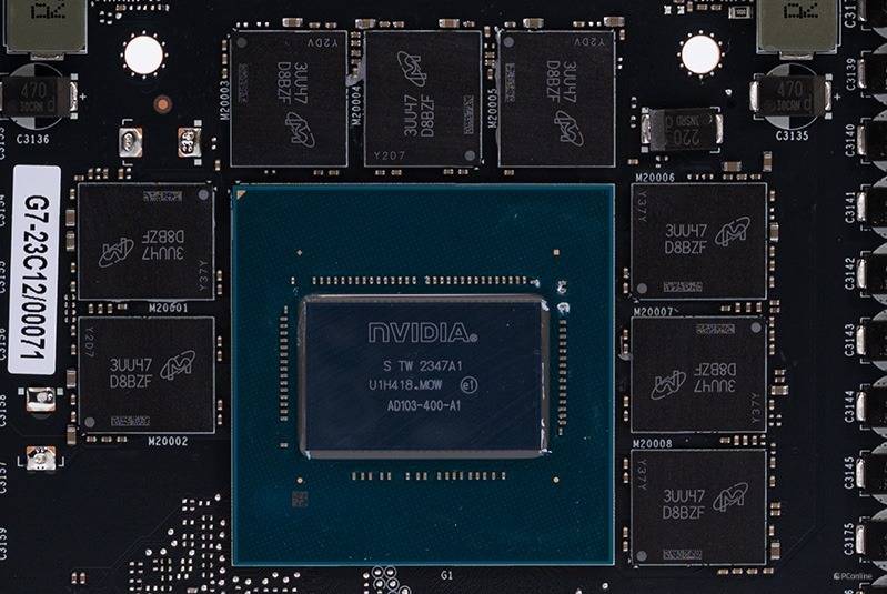 要说它跟之前RTX 4080有什么区别,那PCB中间的AD103-400-A1核心就是最大的不同,TSMC 4N工艺打造,10240个CUDA流处理器,就是目前顶级的AD103芯片,规模也比之前的RTX 4080高了5%。