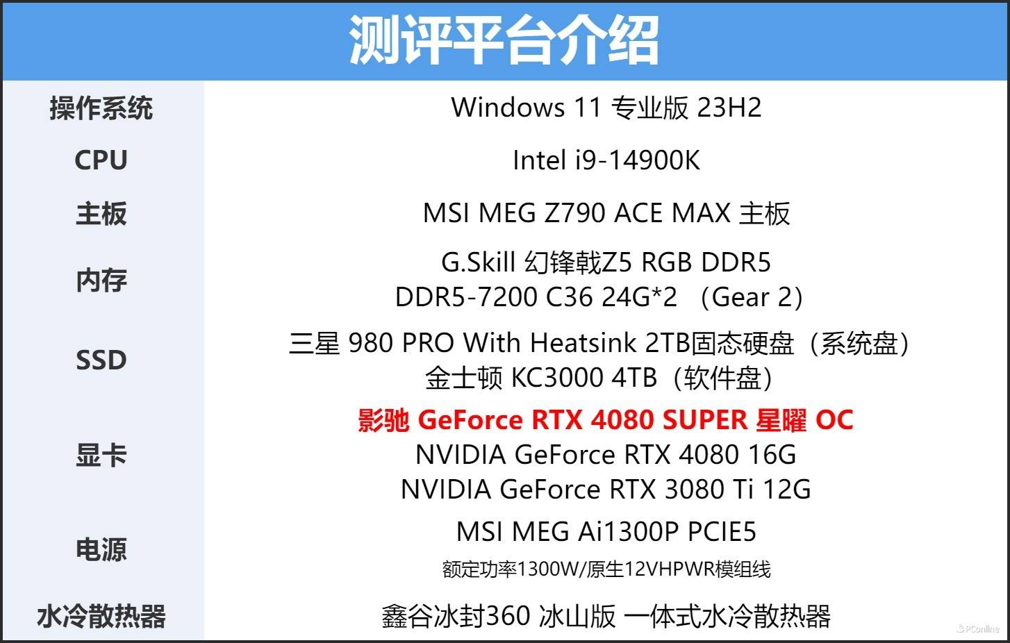 其他配置如上所示,都是时下最顶级的配置,这样才能让影驰RTX 4080 SUPER星曜OC发挥出全部的实力。