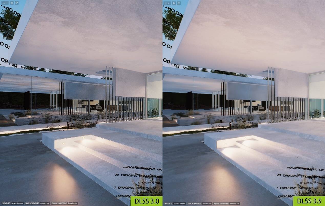 DLSS 3.5除了带来更流畅的使用体验,在画质上也略有改进,我们截图进行了对比,开启DLSS 3.5以后,画质的提升真的异常惊艳,你一眼就能看出二者的差距。