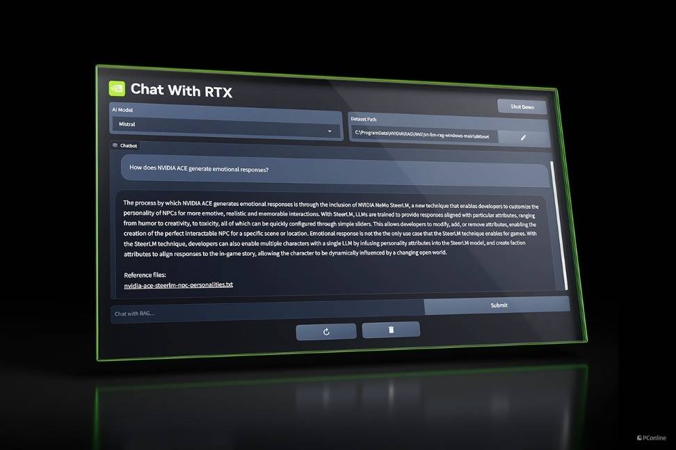 本月NVIDIA还会有Chat with RTX的技术Demo诞生,其可以由TensorRT-LLM加速,让AI爱好者使用名为“检索增强生成(retrieval-augmented generation,RAG)”的热门技术,将PC端侧大模型与自己的数据进行连接。说人话就是大模型可以很好的学习本地的数据、文件、内容等等,从而成为一个更“了解”用户的AI,为你提供更佳的使用体验。