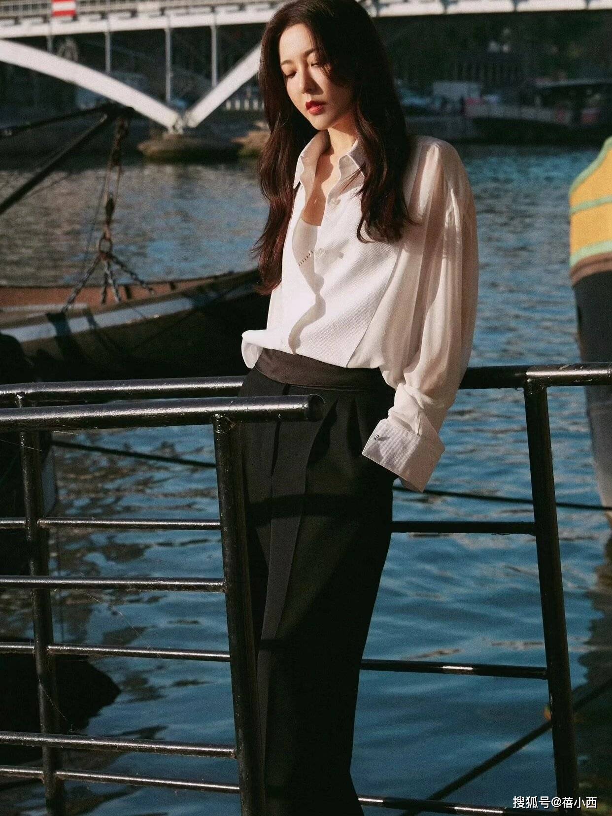 — 曾黎展示了时尚高贵的“简约时尚”:白衬衫与黑色阔腿裤完美搭配 —