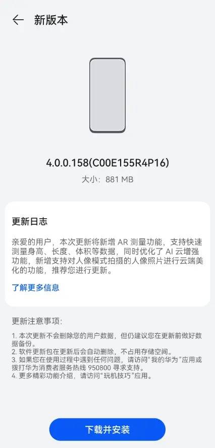 — 新增AR测量功能!Mate 60系列推送鸿蒙OS4 158版本 —