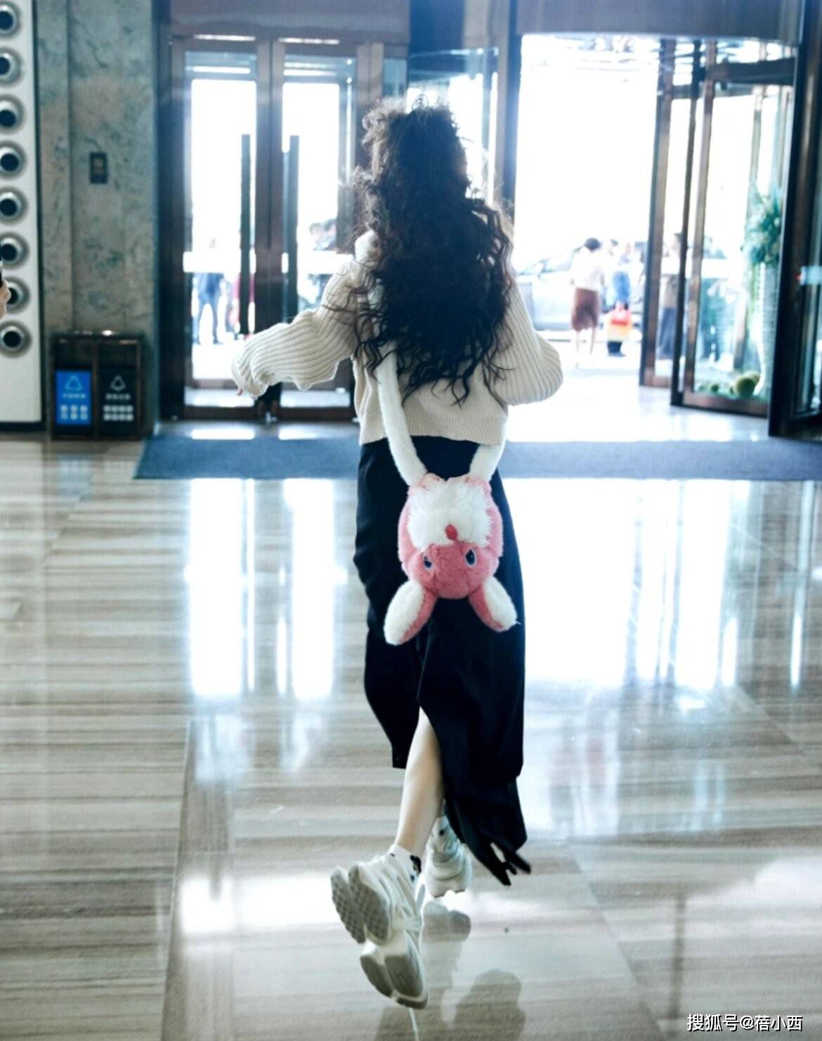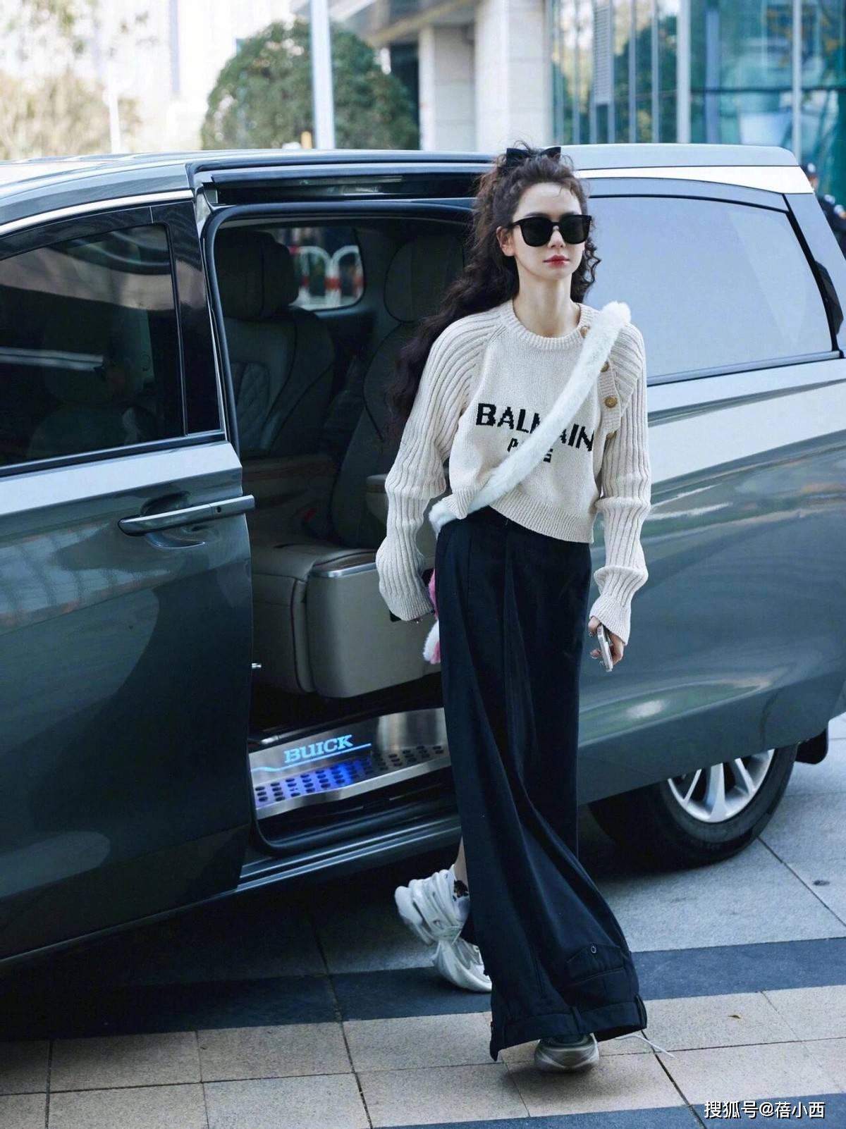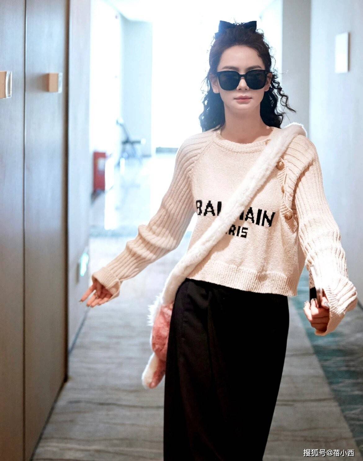 — 戚薇再掀流行:白色毛衣 搭配半身裙与卷发,时髦又有气质 —