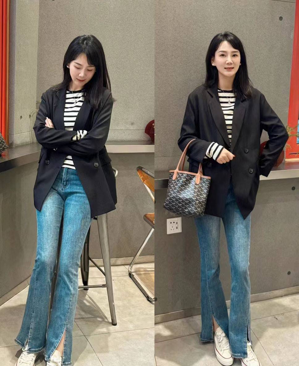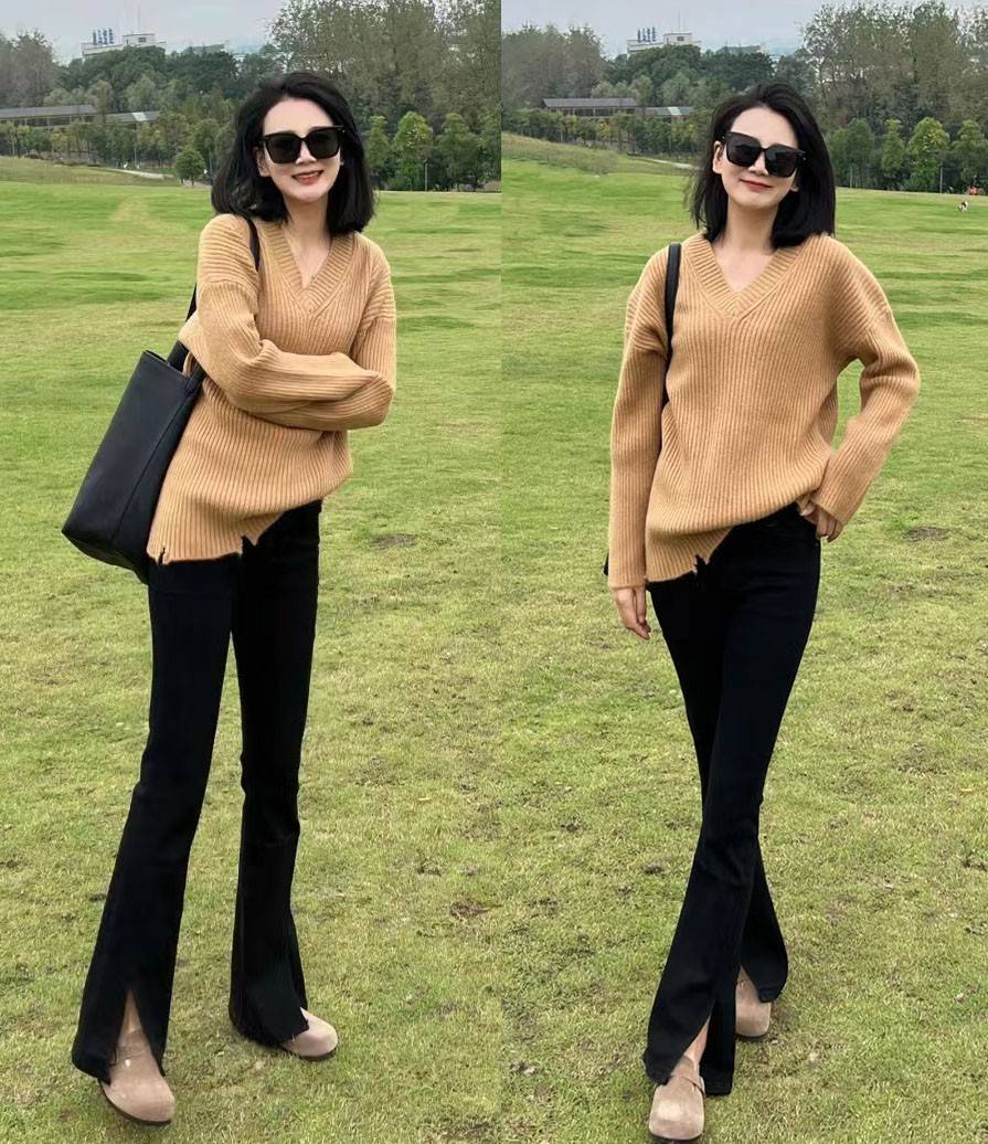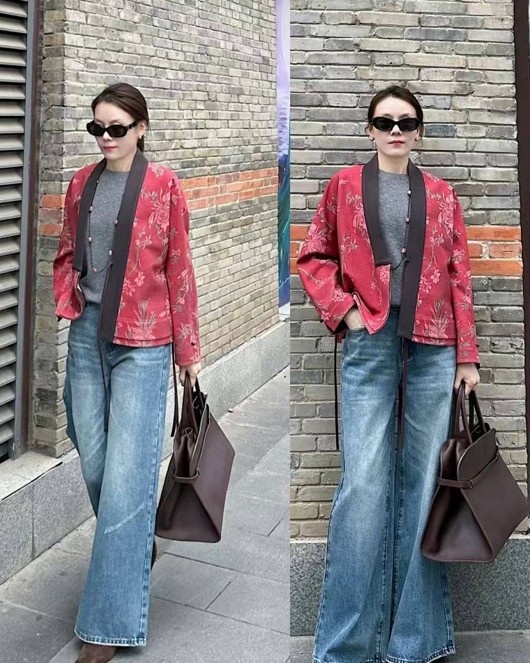 — 时尚百搭:50岁女性春季搭配针织上衣、牛仔裤与短外套 —