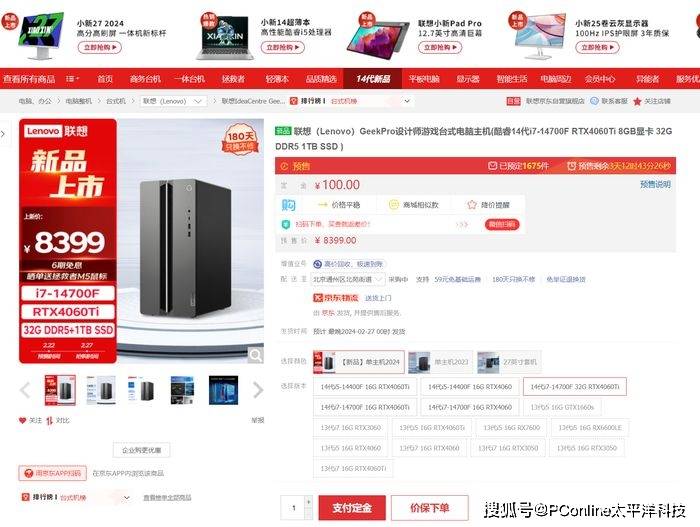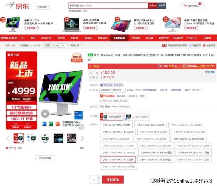 — 京东上线联想小新一体机 英特尔i7版本4999元可享180天只换不修 —