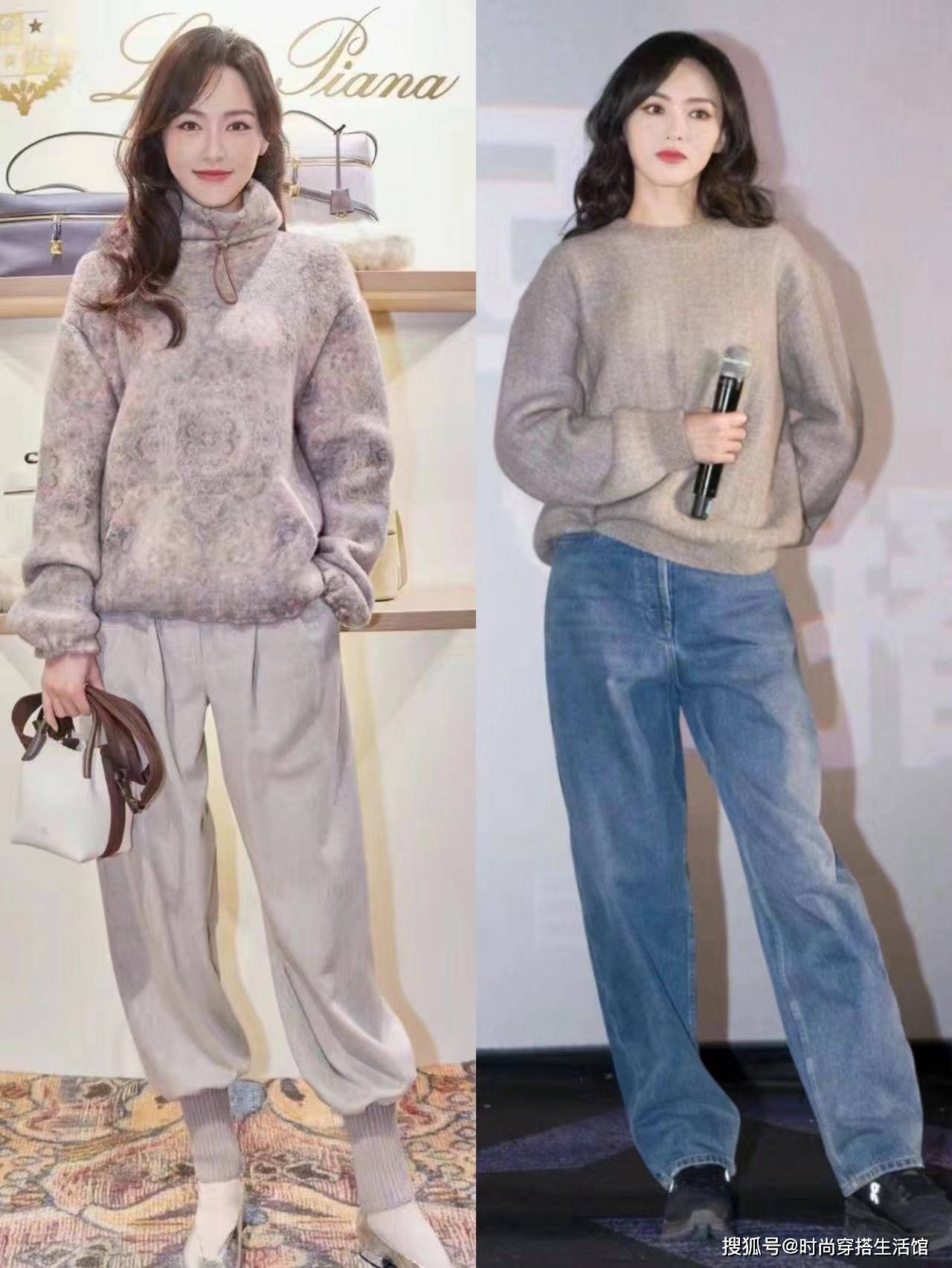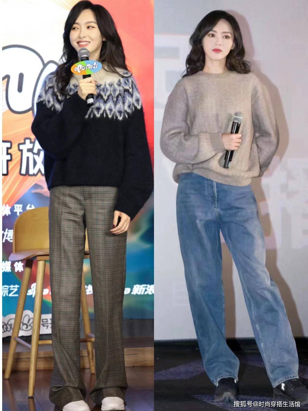 — 唐嫣再次引领新潮潮流:复古毛衣、裤装、平底鞋造型时尚又高雅 —