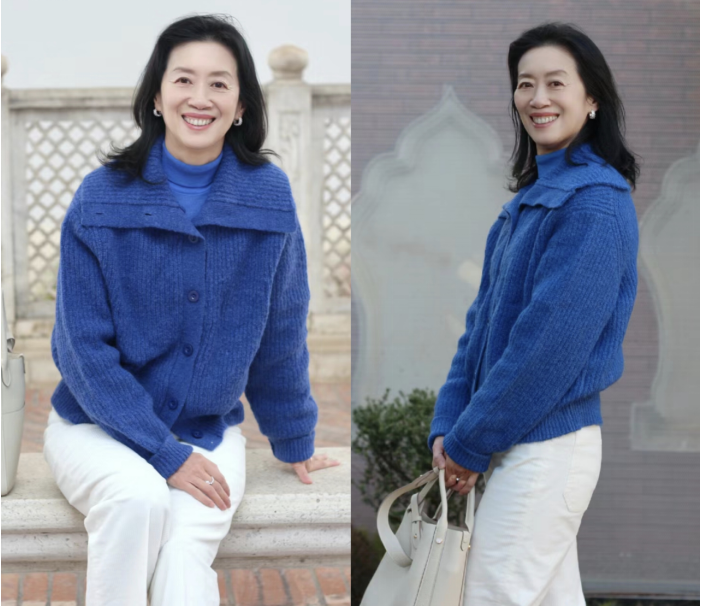 - 郭晶晶与闺蜜在豪宅里聚会!穿V领衬衫+针织衫,高级、显贵又松弛