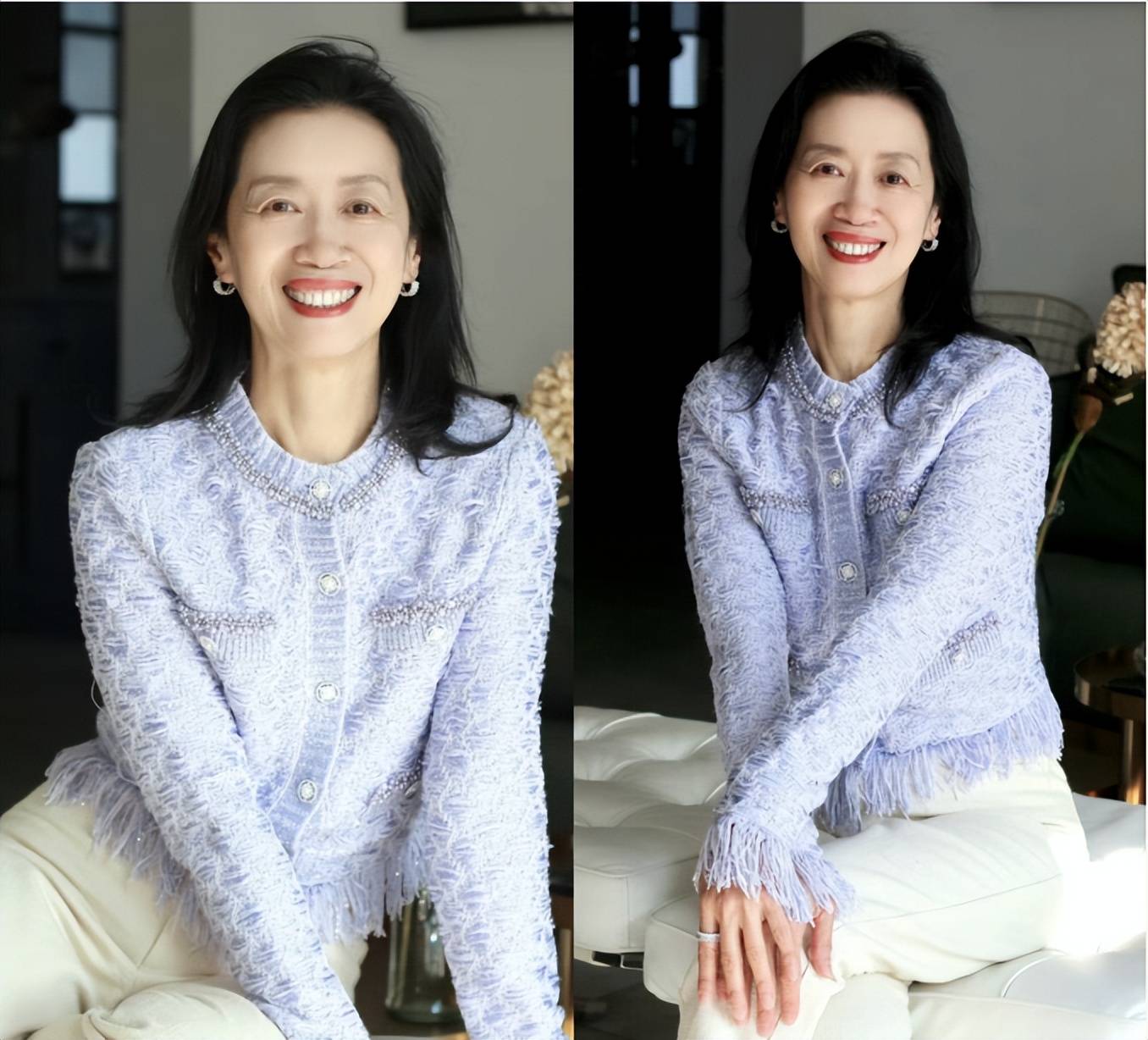 - 74岁刘晓庆新剪了短发减龄35岁,穿西装+阔腿裤,美得像换了个人