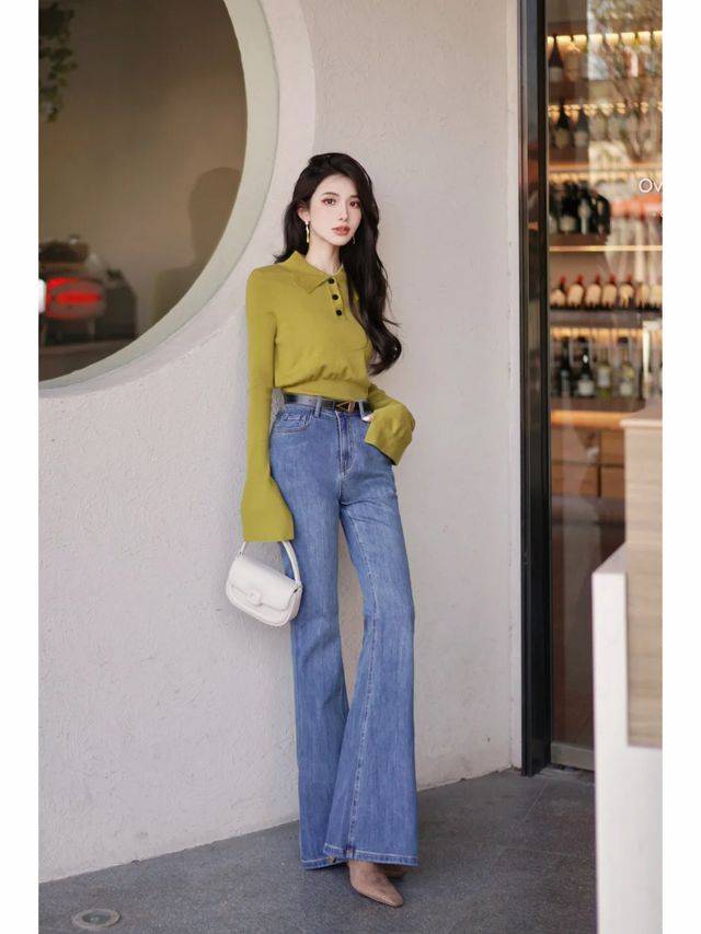 - 街拍:牛仔裤好看又百搭,搭配一字肩上衣很经典,百搭时尚