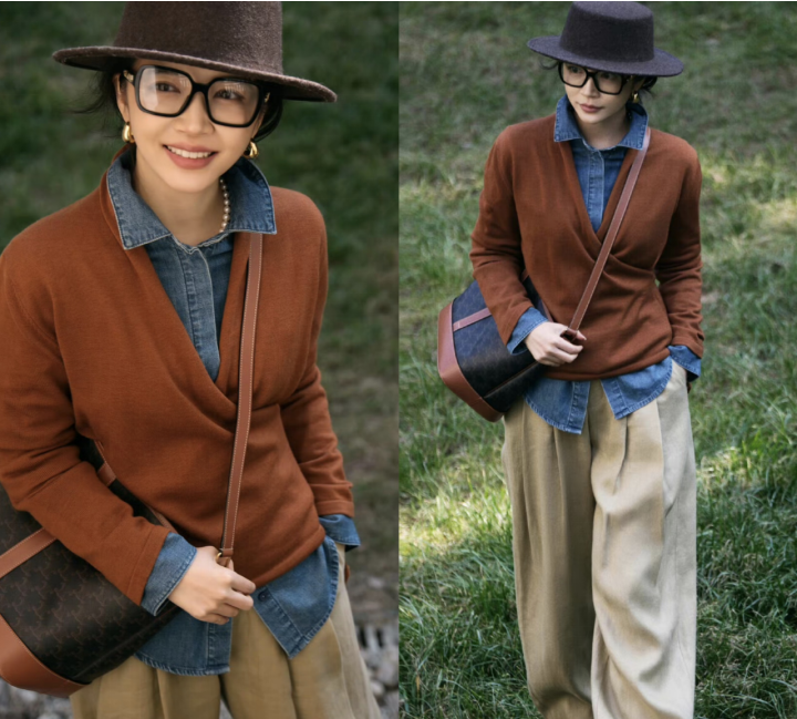 - 郭晶晶与闺蜜在豪宅里聚会!穿V领衬衫+针织衫,高级、显贵又松弛