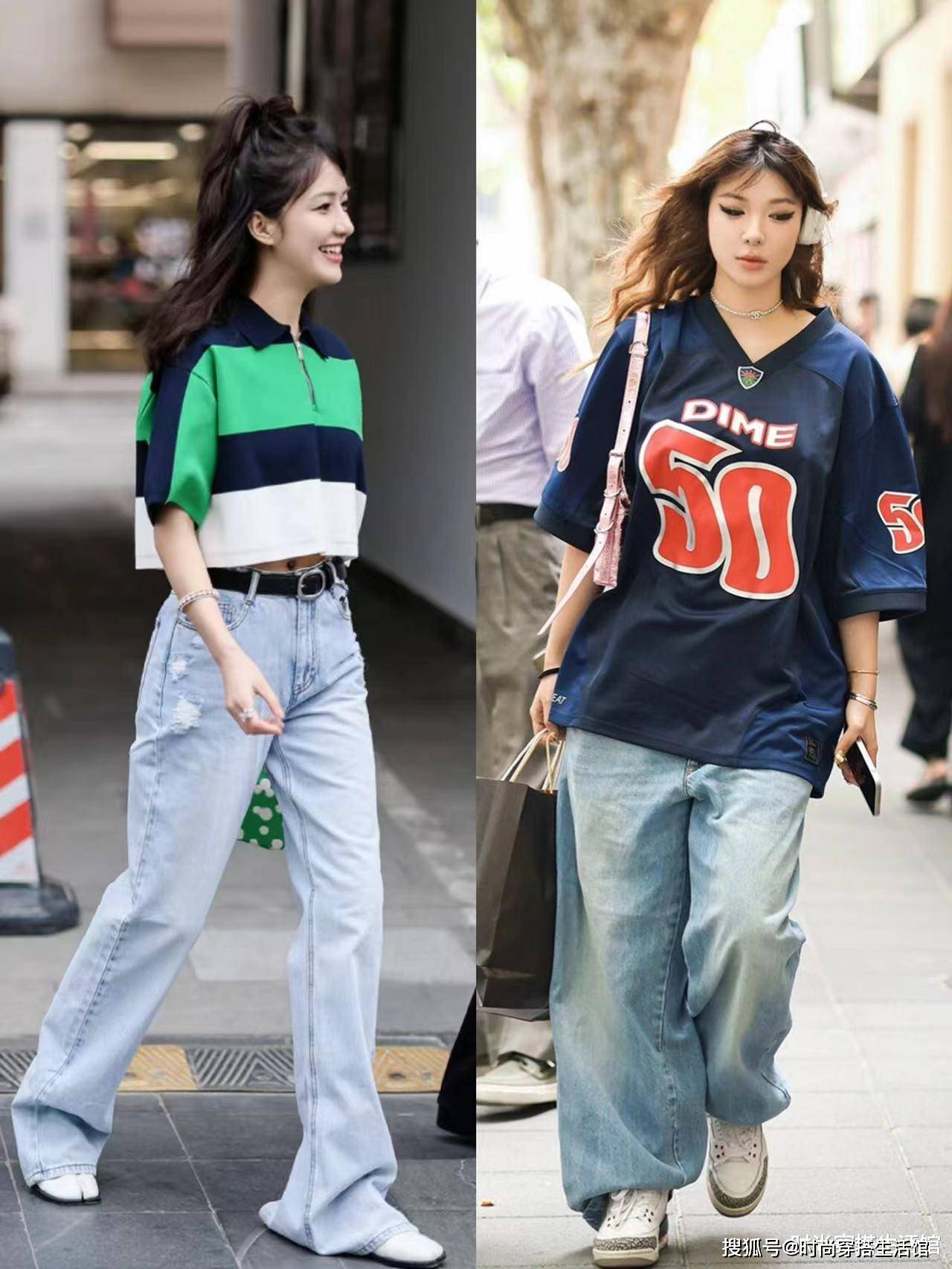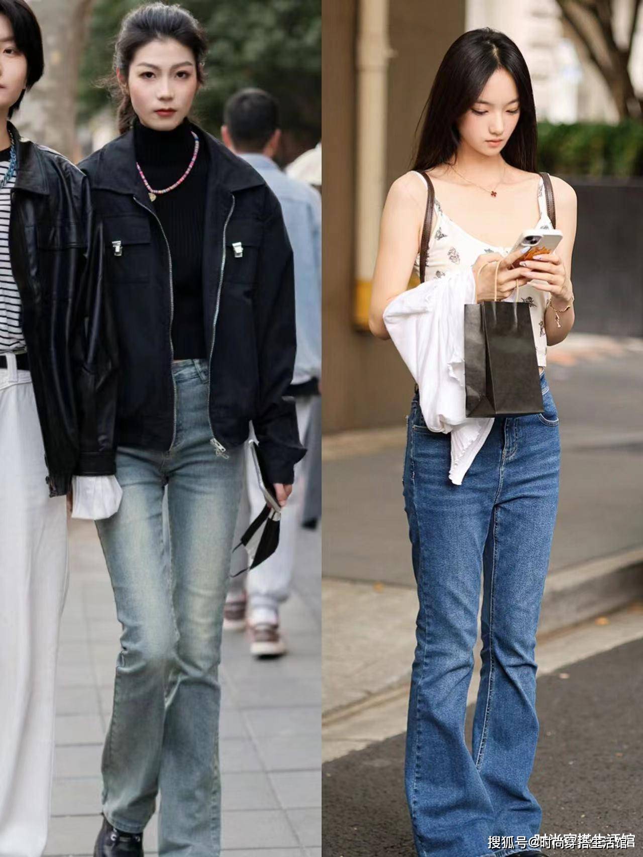- 街拍:牛仔裤好看又百搭,搭配一字肩上衣很经典,百搭时尚