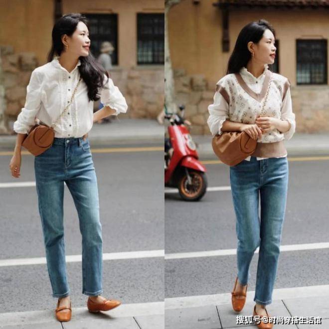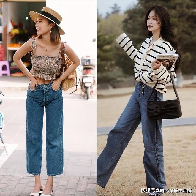 - 街拍:牛仔裤好看又百搭,搭配一字肩上衣很经典,百搭时尚