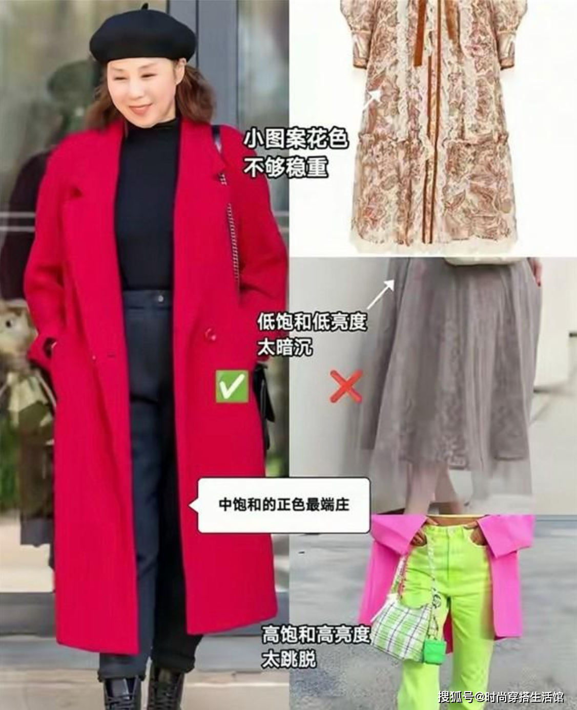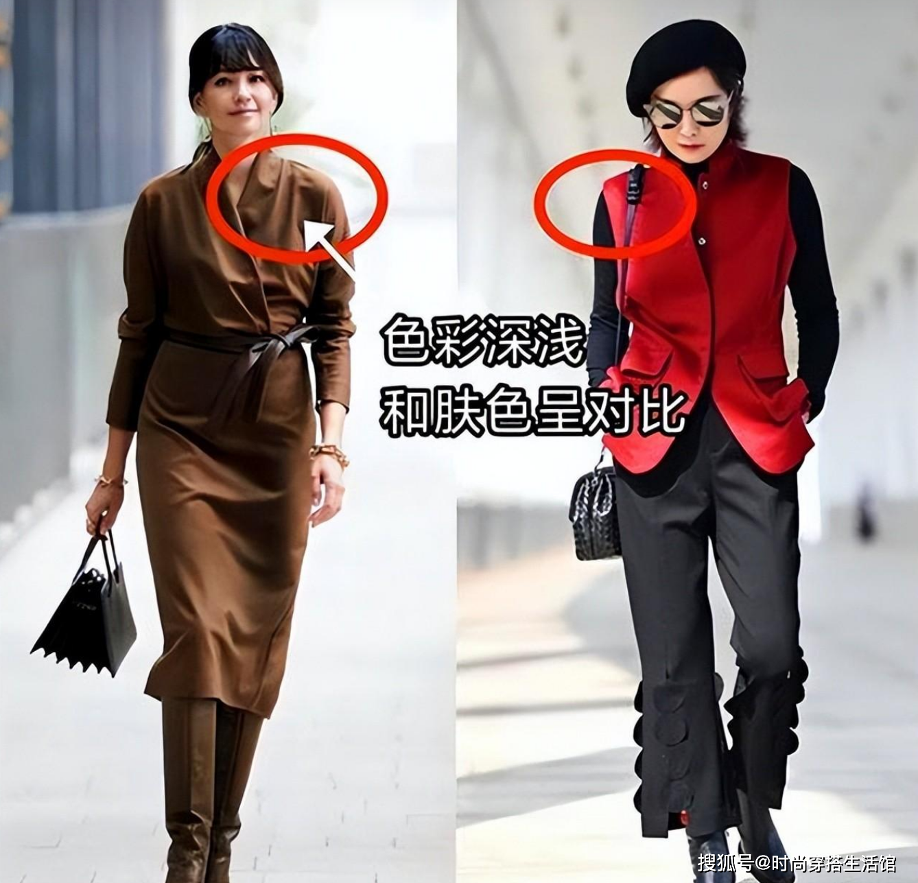 — 避免两种颜色,选择三种颜色让暗黄肤色更显白并显年轻 —
