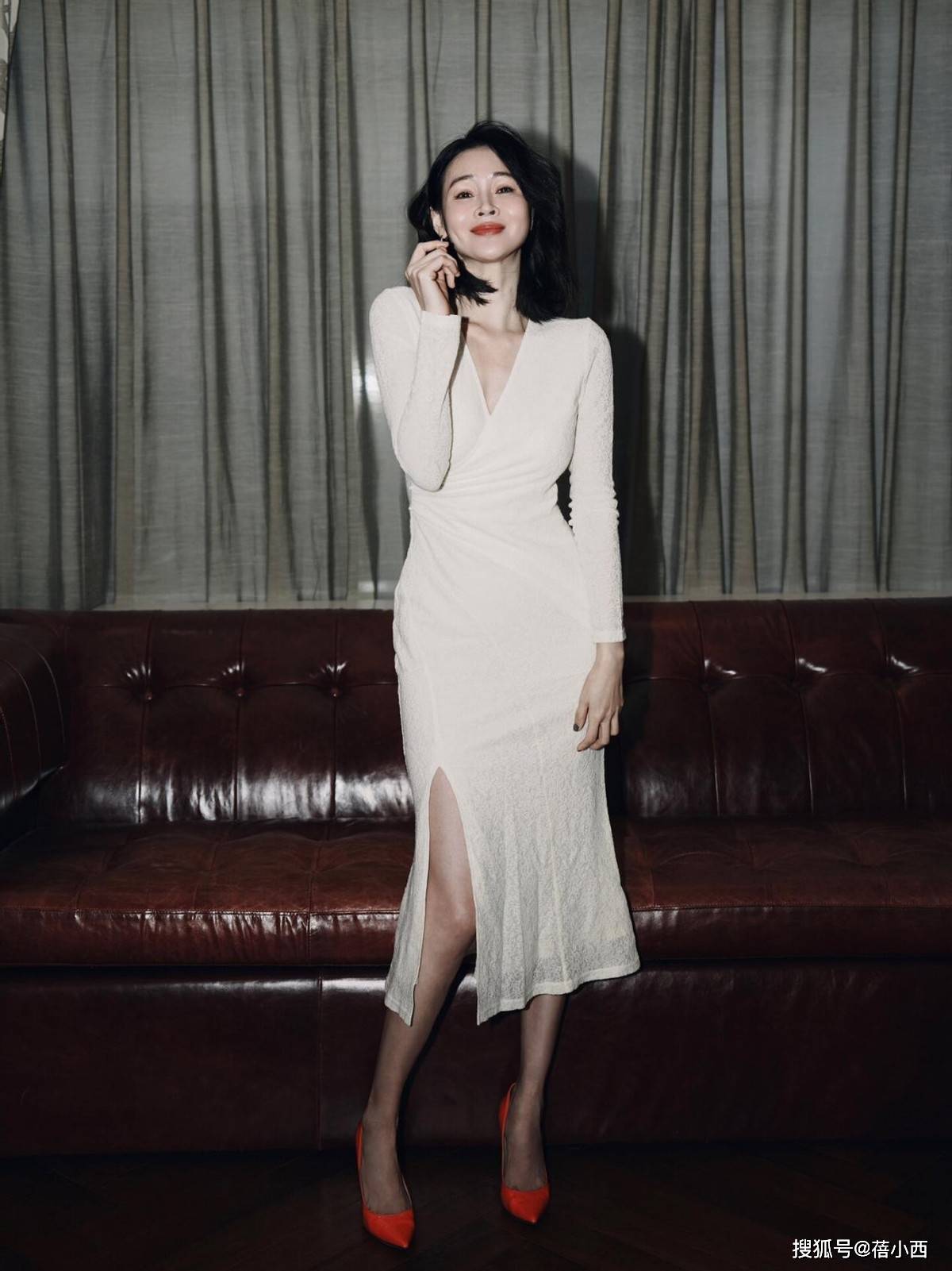 — 41岁的于明加在豪宅中拍摄时穿着衬衫和短裤,玩起了“下半身消失”的创意,令人感到心动 —