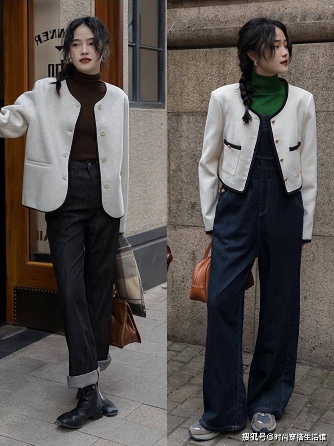 - 街拍:牛仔裤好看又百搭,搭配一字肩上衣很经典,百搭时尚