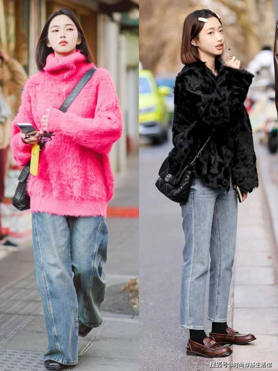 - 街拍:牛仔裤好看又百搭,搭配一字肩上衣很经典,百搭时尚