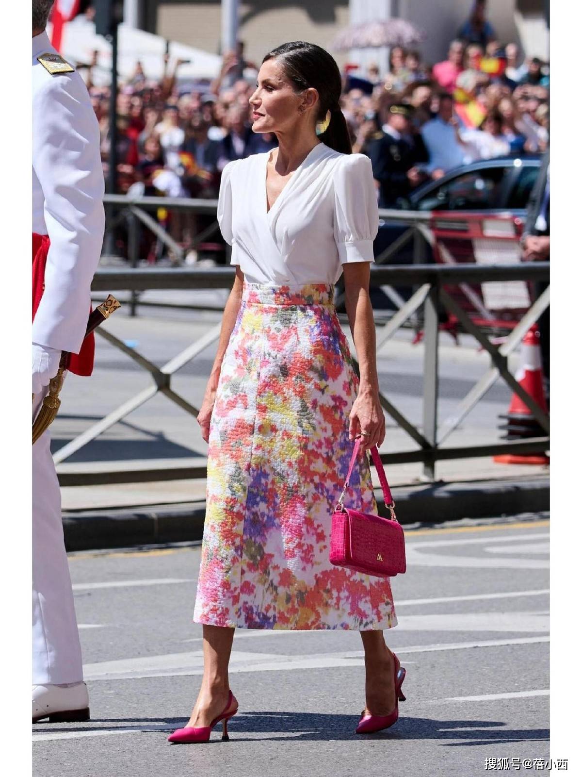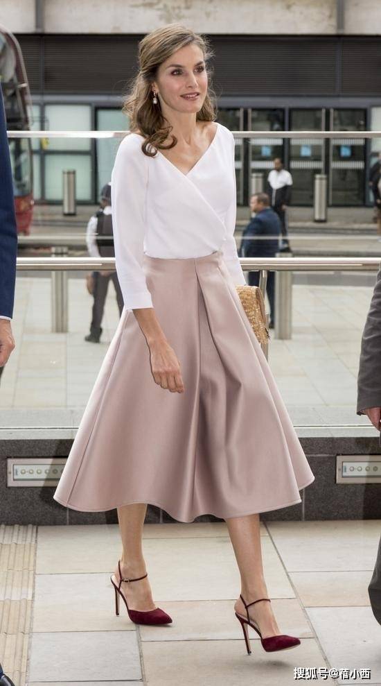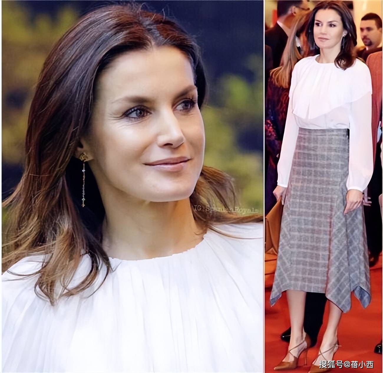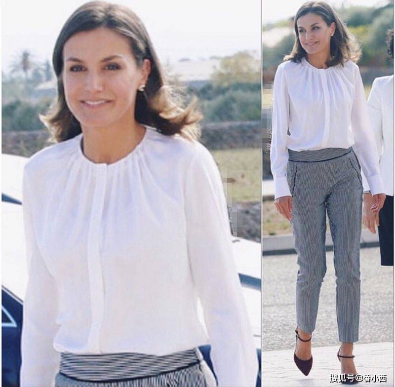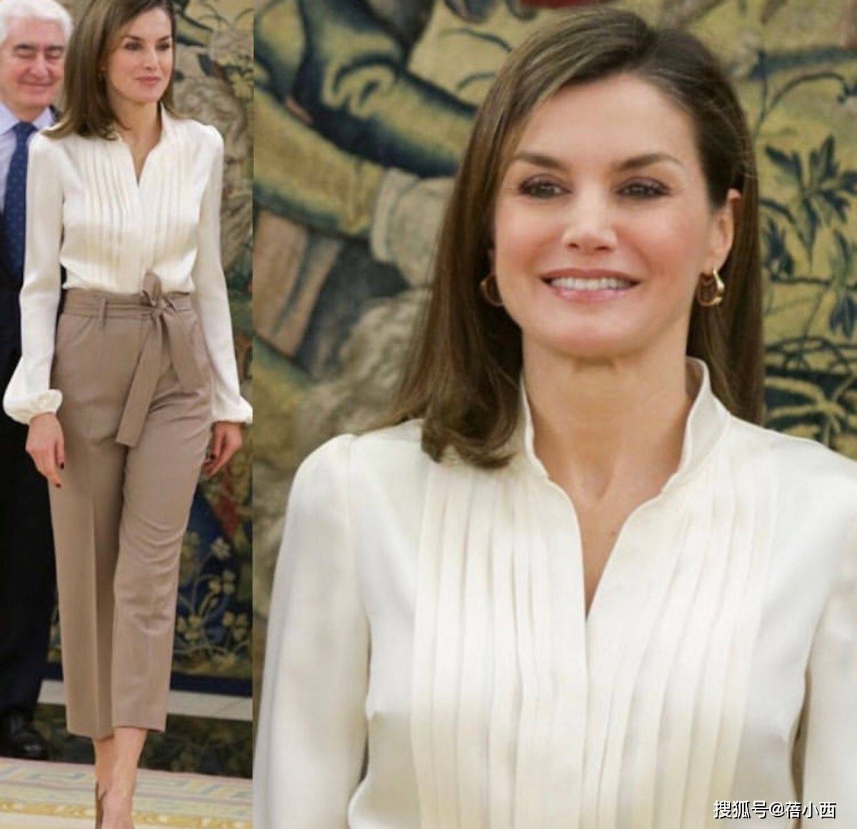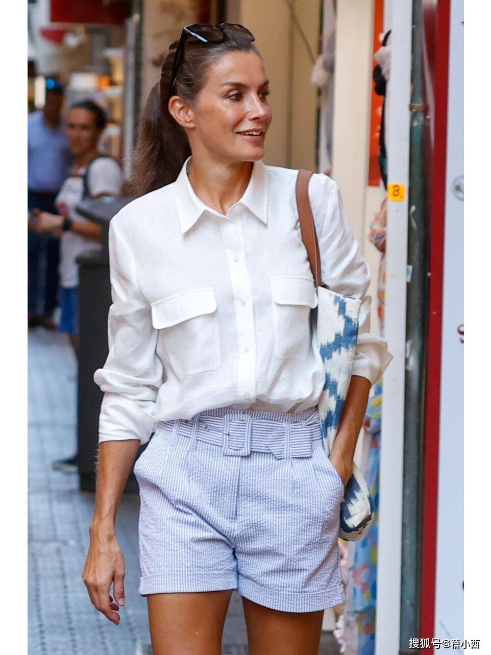 — 西班牙王后,51岁,擅长搭配白衬衫,九分裤和半身裙展现时尚韵味 —