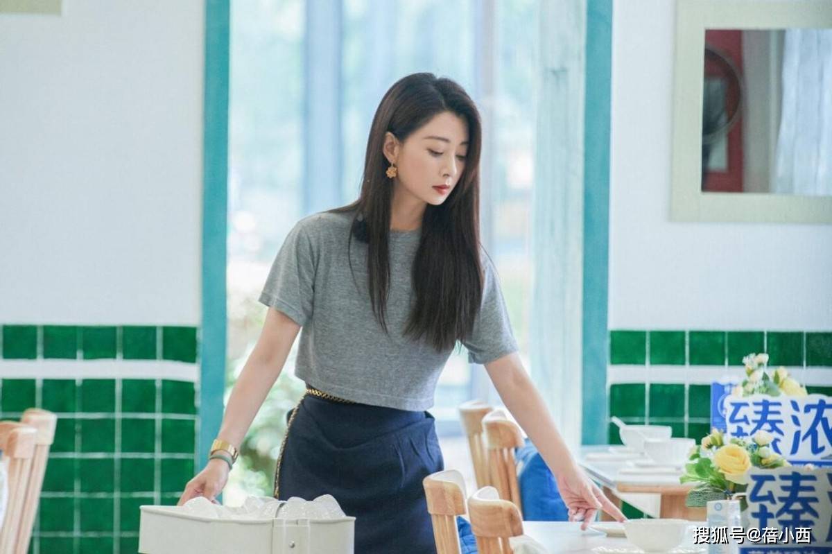 — 殷桃展示高级灰搭配:短袖T恤、宽松裤及半扎发型,时尚洋气 —