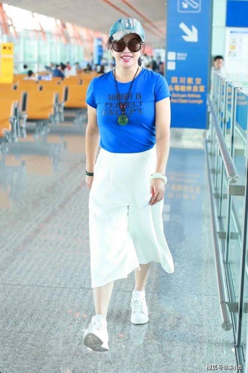 — 刘晓庆越老越时髦,穿格纹衬衫+小白裤+小白鞋,高级减龄又洋气 —